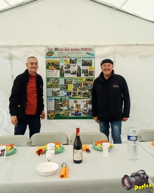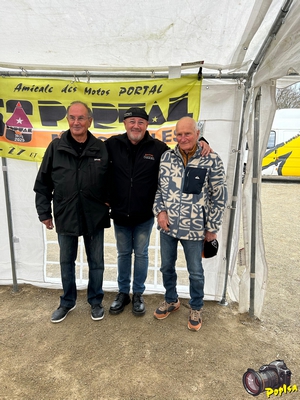 Michèle, Gilles et Denis PORTAL entourés de membres de l'Amicale des Motos PORTAL |