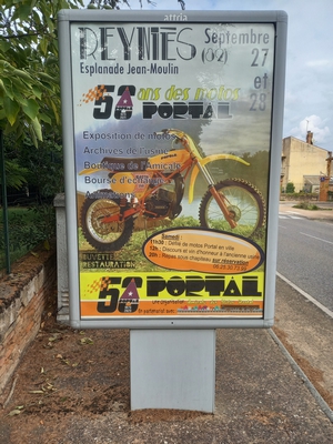 Deuxième journée consacrée de la célébration des 50ans Portal, dans une ambiance plus intimiste, puisse que les motos, encore présentes sur le site, ont été disposé en arc de cercle sur l'esplanade Jean Moulin. Gilles et Denis sont, de nouveau, venus échanger avec les visiteurs.