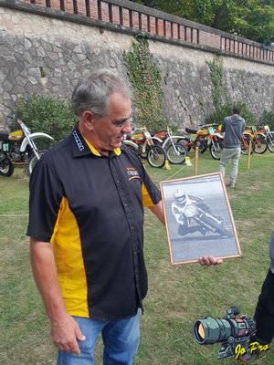 Charles Claudel présente une photo de lui en action sur la 250 RS Critérium |