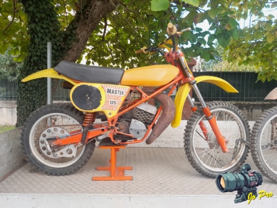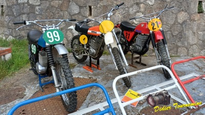 Deux maico identiques à celles avec lesquelles Gilles et Denis ont été champion de France (1967 et 1970) encadre la Portal maico de Denis de 1975 |