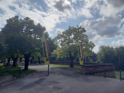 Dans un écrin de verdure à côté du pont qui enjambe le Tarn et au pied du mur de l'esplanade Jean Moulin, les 64 motos ont été ligné dans l'ordre chronologique de fabrication.